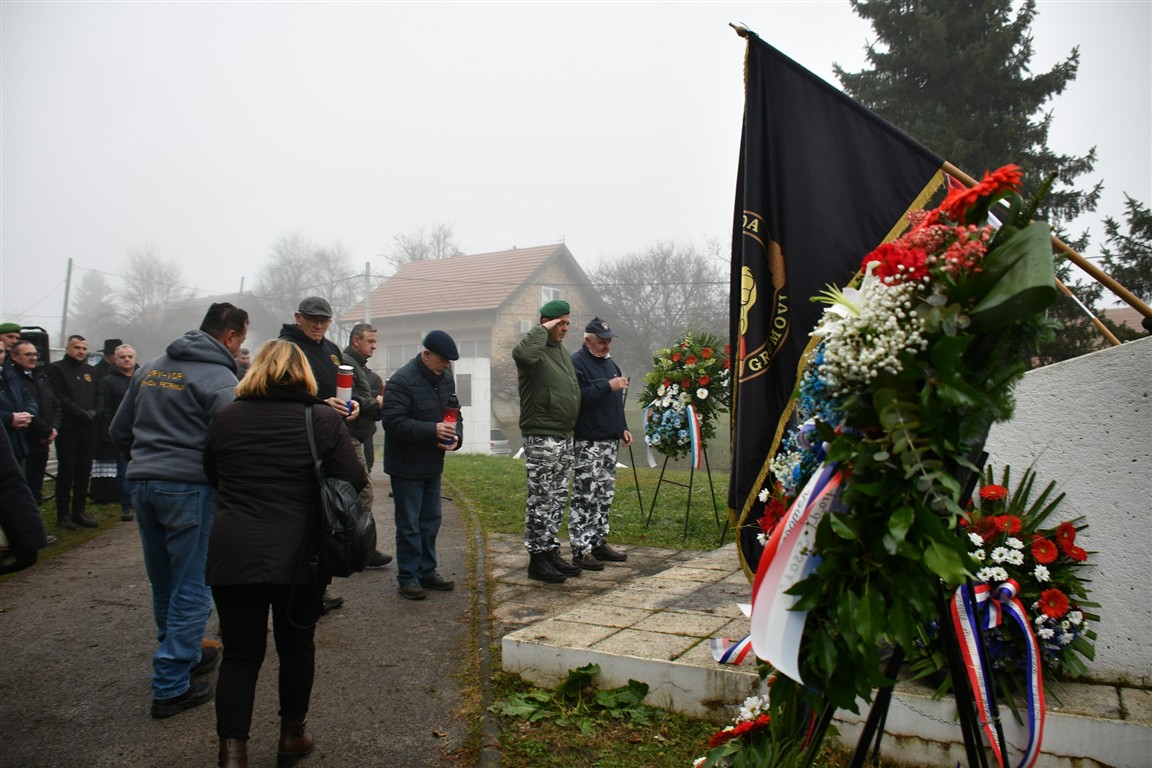 Uz obitelji poginulih, ispred Urv 2.gbr Gromovi počast su odali, predsjednik Udruge Nenad Bužanić, dopredsjednici D. Petrović, M. Valentić, predsjednik Kluba OKB D. Maršanić sa nazočnim veteranima 2. Gardijske brigade.